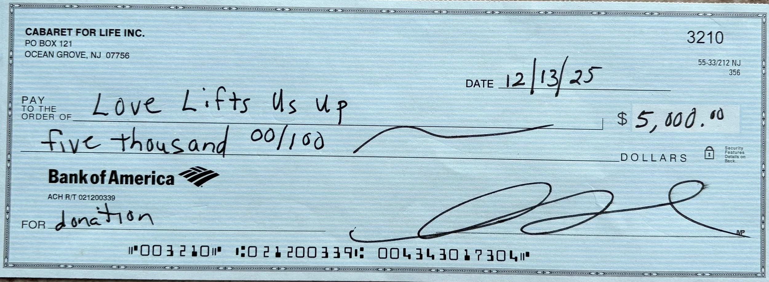 Thank you to Cabaret for Life for their generous donation to Love Lifts Us Up at your annual gala. Your support helps us continue lifting others and spreading hope in meaningful ways. We’re so grateful for your kindness and partnership.
